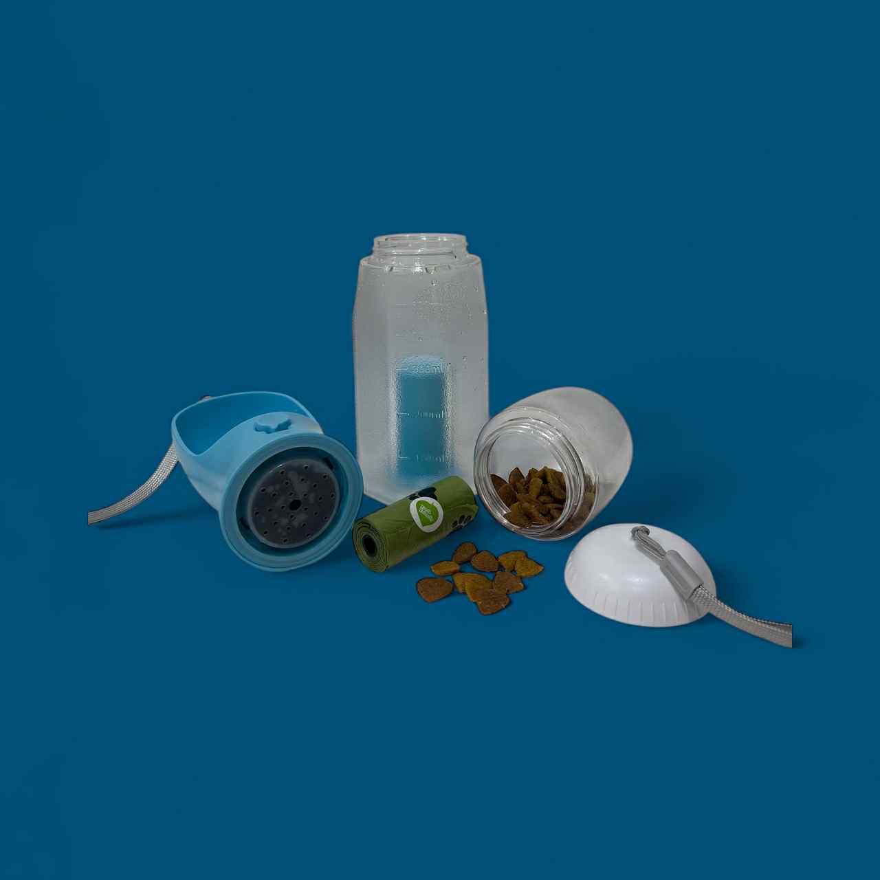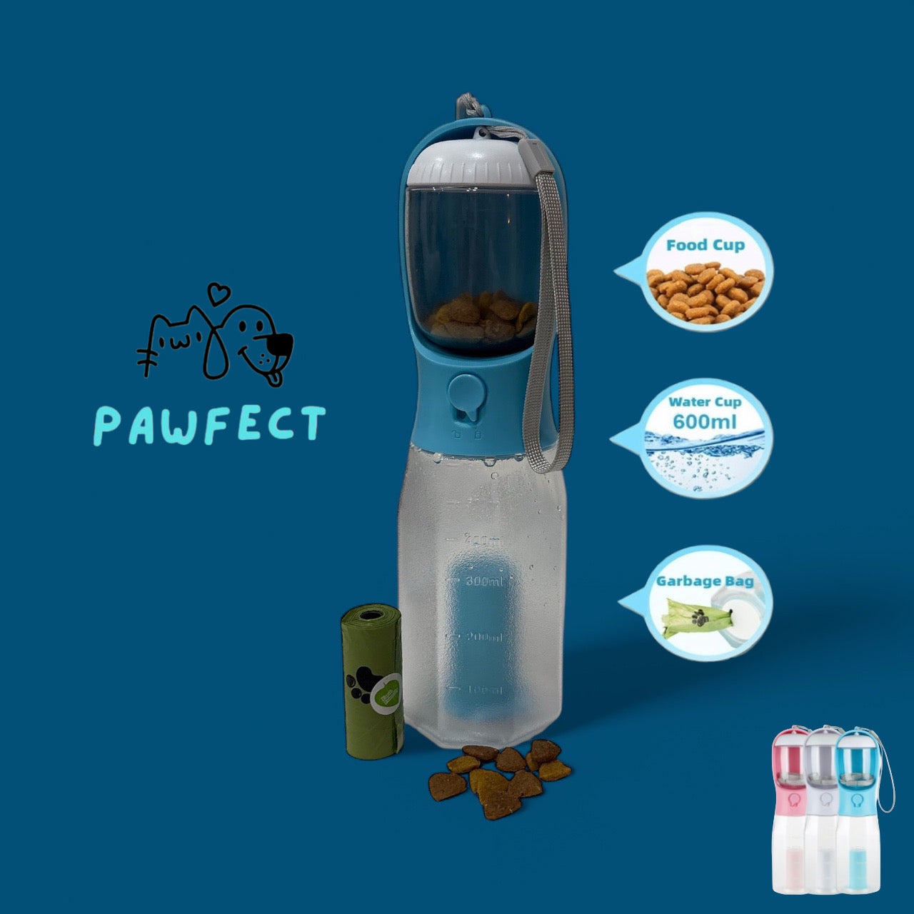 3-in-1 Pet Travel BottleFresh water, snacks, and clean-up in one. 600ml, leak-proof, lightweight, and fitted with a built-in filter for your pup’s Pawfect sip.